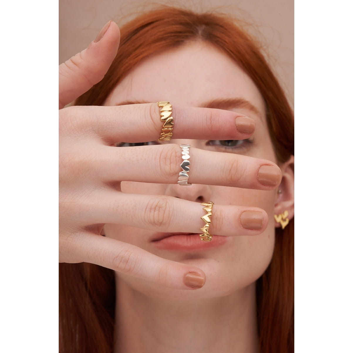 Anel feito a mão em ouro 18K com o desenho do coração da criança na volta completa do aro.